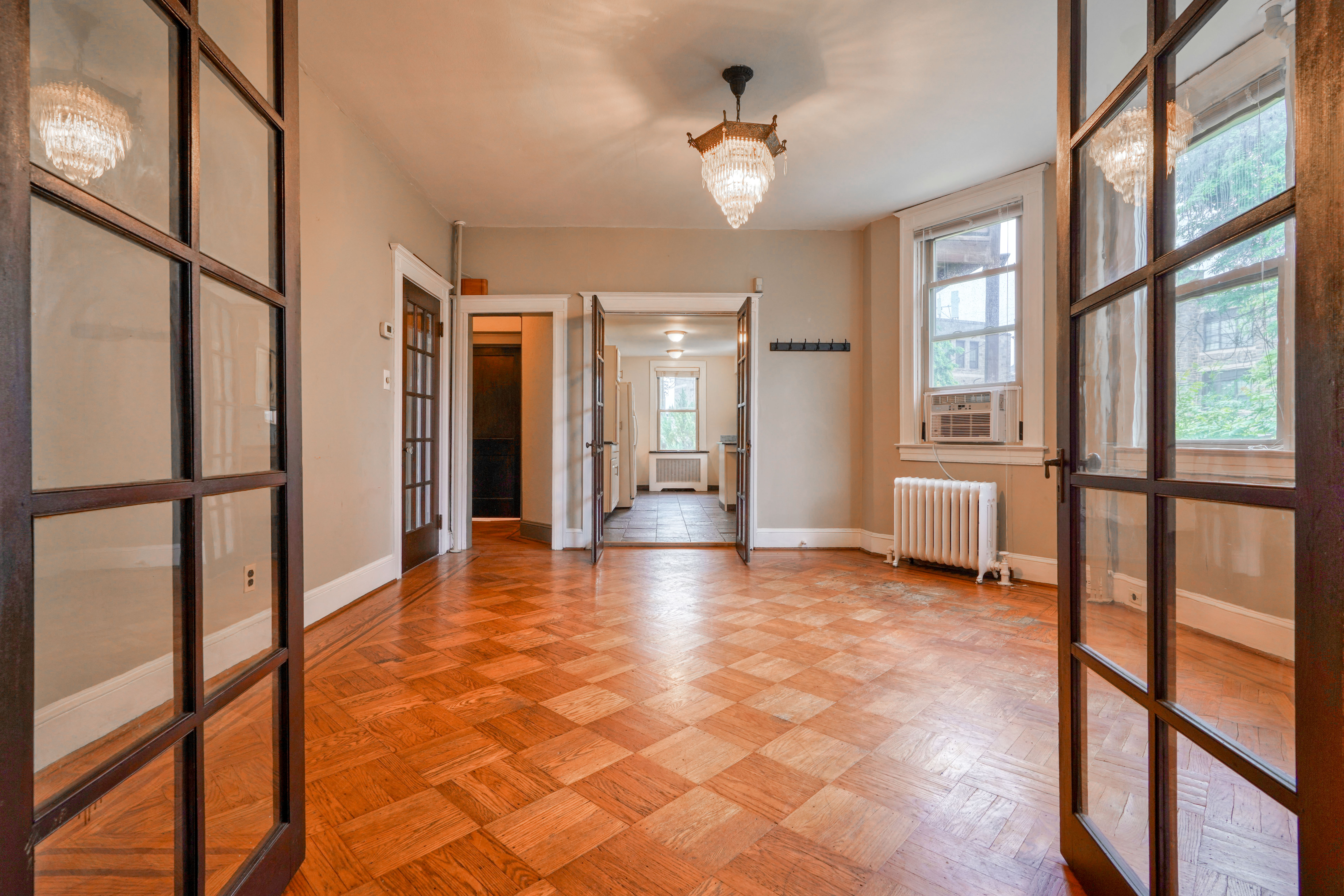 Spacious 2 bedroom, 1 bath apartment on the entire first floor of this charming home, with private entrance. This apartment has hardwood floors, a deluxe renovated kitchen with slate floors and granite countertops, and stained glass windows and French doors. Updated bath, access to a very large yard, shared laundry (new washing machine 2021). Just a stone’s throw from Harford Road’s SoHa Union’s shops, the new Animal Boy sandwich shop + bar, and Zeke’s Coffee—this corner of Lauraville just keeps getting cooler.New boiler/furnace in December 2022; new roof Fall 2022; new water heater September 2022; new microwave January 2023. The apartment is about 1,223 square feet. Both bedrooms have ceiling fans. 2 window air conditioners are included for your use. Utilities are not included. Owners/Landlords pay for yard maintenance and quarterly pest treatments. Application fee $30. Security deposit = 1 month's rent.