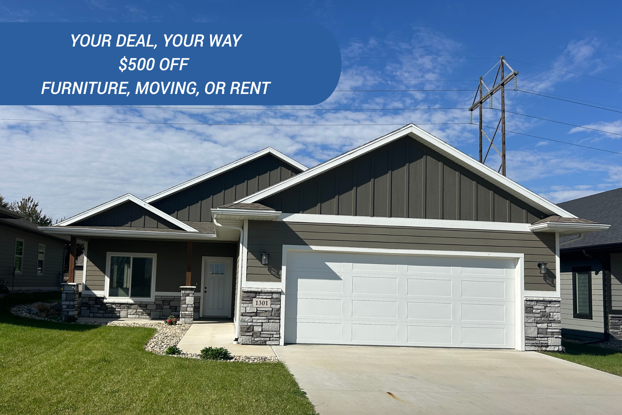 Your Deal, Your Way!Get $500 off — apply it toward furniture, a moving job, or rent.Terms and conditions apply.The Experience is proud to offer deposit-free living to qualified renters through Obligo! We understand that moving costs can add up, so we want to extend financial flexibility to our residents.Enjoy comfortable living in this beautiful 2-bedroom, 2-bath home with 1,438 sq. ft. all on one level. Located just blocks from Dawley Farm Village, you’ll have quick access to shopping, dining, coffee shops, and more. The open-concept layout features vaulted ceilings, a spacious kitchen with custom cabinets and a large island, plus a versatile bonus room for an office or nursery. A covered patio fenced yard with underground sprinklers, and an insulated garage complete this move-in ready home.Please reach out to schedule a showing today at (605) 219-9470!Walkthrough Video- https://youtube.com/shorts/JKdAtjAay2o