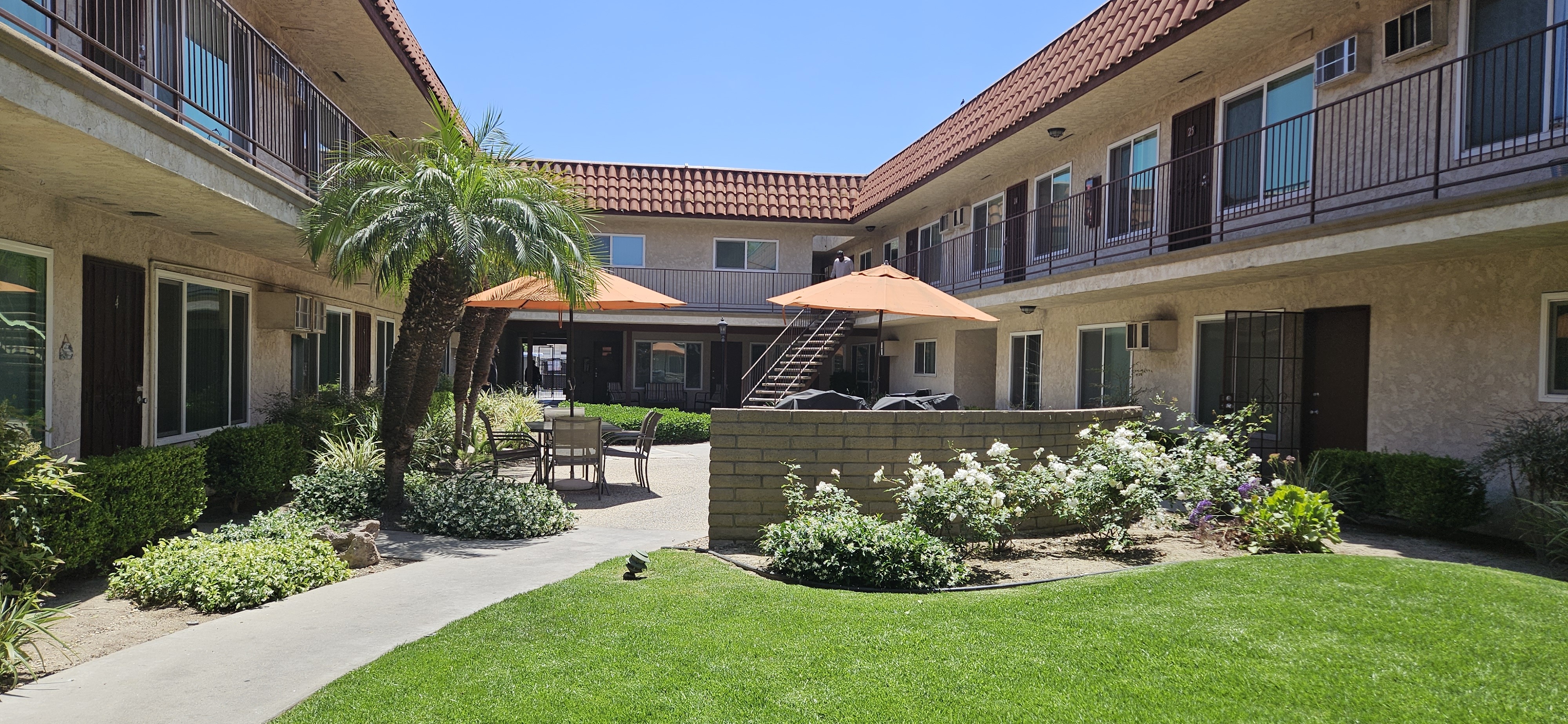 Our 2 bed/1bath unit has wood laminate floors, except in bedrooms, which are carpeted.Gas stove, dishwasher, central heat and a wall AC unit. There is also a ceiling fan in the dining room.Rooms are spacious and the master bedroom has a nice sized walk in closet.This is an upstairs unit.1 carport with storage is provided, along with first come first serve parking inside the property for one additional vehicle.We have an onsite manager, a nice clean laundry room, 2 gas barbecues and tables in our courtyard for tenants to enjoy. We also have a pool and a rec room that tenants can reserve for parties.We are conveniently located approximately 5 miles from the 5 &; 91 freeways and a couple of miles from Knott's Berry Farm &; Cypress College.