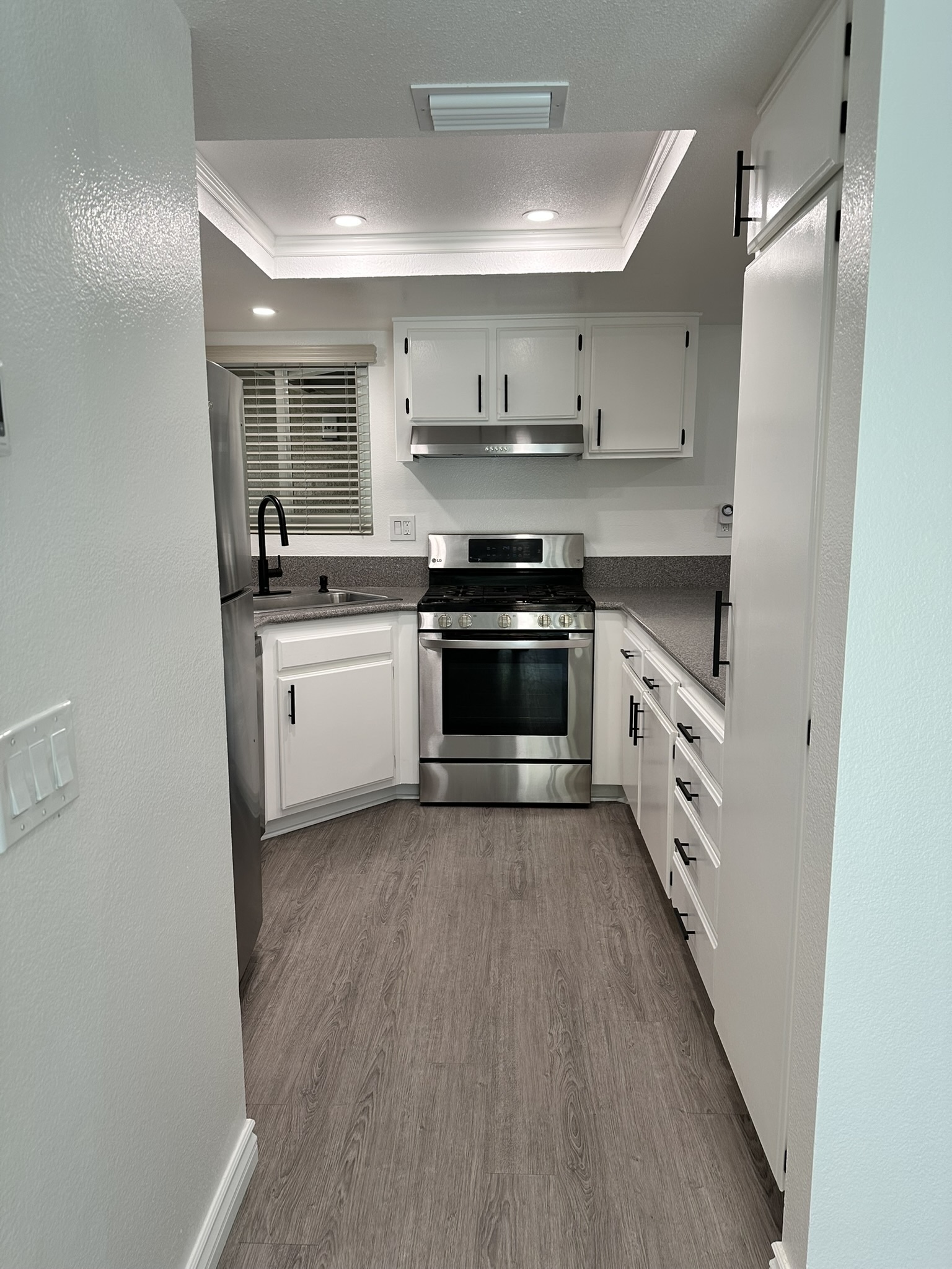 Approx. 900 sq feet in 2 bedroom, 2 bath condo located in quiet community. Single level unit with 4 steps to courtyard area. Large private patio with entry from living area and second bedroom. New refrigerator, water heater, dual pane windows and blinds. Also includes central AC/heat, dishwasher, gas range and washer &; dryer. LVP flooring throughout. Primary bedroom has ensuite with dual sinks and newly renovated walk-in shower. Second bathroom is newly renovated with shower over tub combo. Detached 1 car garage with new opener. Permit required for other overnight parking. The community has 2 pools and spas, plus a clubhouse that is available for reservation. Conveniently located near Metro stations, schools, Saddleback College, shopping centers and freeways. Two pets are allowed with additional rent for pets as follows: $50 per dog, $35 per cat and $25 for other. Monthly rent of $3,200 is for 3 people and increases with additional tenants. We are seeking a long-term tenant.