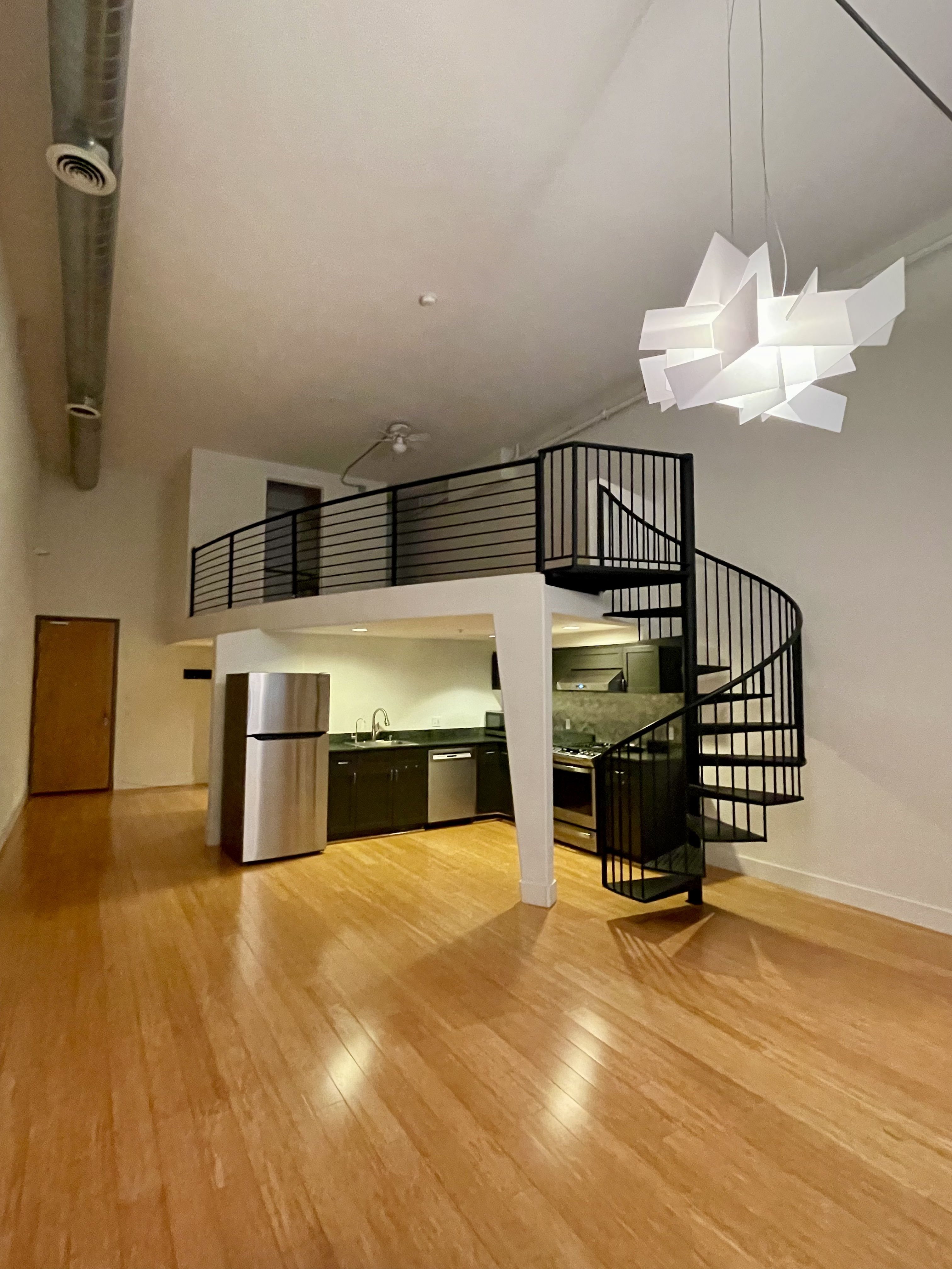 18 Lansing is a historic building with 28 lofts on Rincon Hill/East Cut/South Beach converted from the 1928 Sorg Printing building in 1996. With brand new appliances, this expansile 3rd-floor loft has a sunny Southern exposure, dramatically high ceilings, and windows in a large open floor plan with new bamboo flooring. Open kitchen with granite counters &; an office/2nd bedroom plus powder room provide great additional space. The spiral staircase brings you to the upper bedroom and walk-in closet, with a washer and dryer—a full bathroom with a shower over a tub. There is one car, independent parking, and a large storage cage. Street parking and a parking lot/garage are also available nearby. Elevator is available. This unit also comes with a large storage unit in the building. Right next to the building is a charming Guy Pl. Mini Park to relax in. Easy freeway access is right next to the Bay Bridge, local transportation. The location is also steps away from many conveniences, including Philz, Whole Foods, Woodlands, the Financial District, the Embarcadero/Ferry Building, AT&;T Park/Chase, and downtown. This is the perfect unit for young professionals who want a good work/life balance and plenty of space in a densely populated urban paradise. The unit will be rented unfurnished.