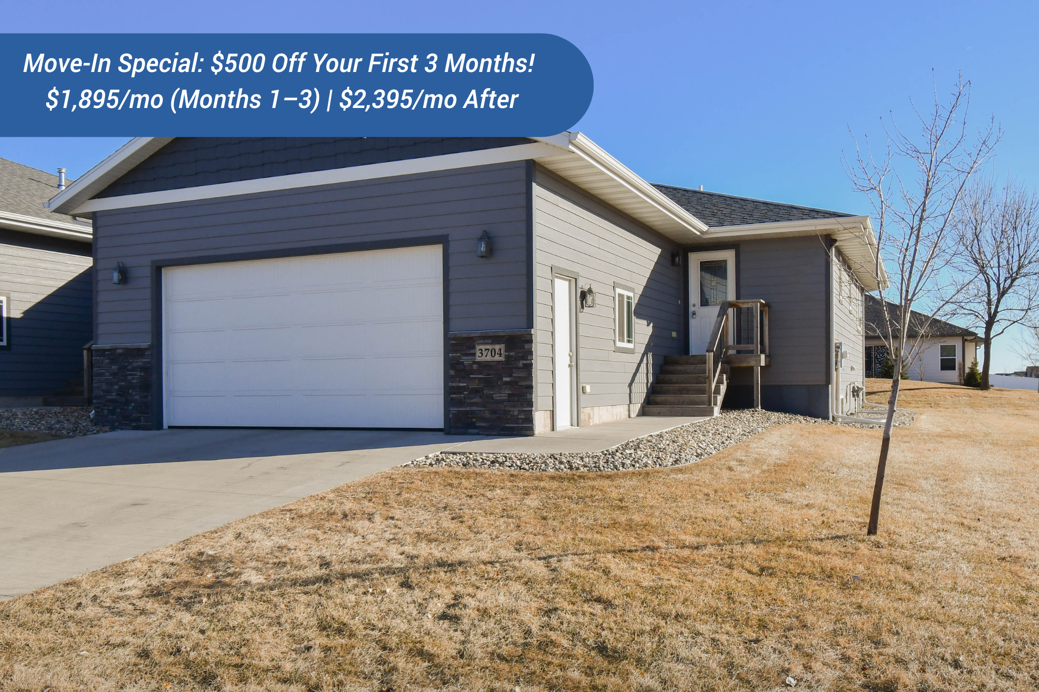 Rental special: Receive $500 off your first three months of rent — pay just $1,895/month for the first three months, then $2,395/month for the remainder of the lease term. Must-See Townhome Built in 2019! The Experience is proud to offer deposit-free living to qualified renters through Obligo! We understand that moving costs can add up, so we want to extend financial flexibility to our residents. Located on a quiet cul-de-sac in east Sioux Falls, these quality-built townhomes feature vaulted ceilings, fireplaces, and high-end finishes. 3-bedroom layout with over 2,000 sq. ft. of living space, a modern kitchen with breakfast bar, and a fully finished lower level. Enjoy the convenience of an attached double garage, snow and lawn care included, and pet-friendly options. Pet deposit: $500/per pet Pet rent: $50 per pet Please reach out to schedule a showing at (605) 219-9470!
