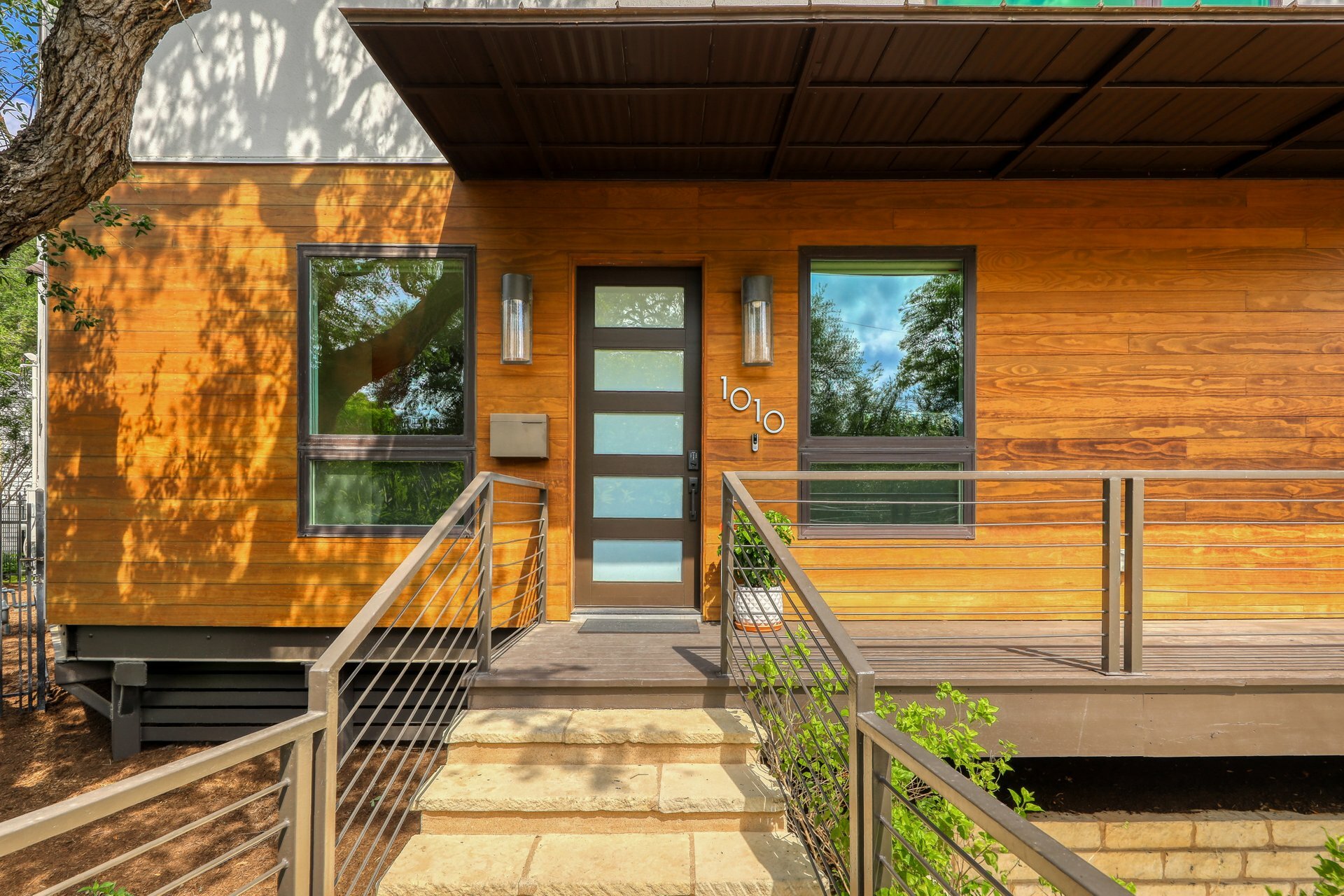 Amazing fully furnished, lock-and-leave tree house style home with great walk-ability in an incredible Travis Heights location. This spacious 3 bedroom luxury rental is low-maintenance and combines the benefits of living in a condo with the privacy and freedom of a single-family home, surrounded by many of the nicest homes in 78704. Entertainment spaces are all on the main level, showcasing beautiful hardwood floors and marble accents throughout. Enjoy the night skyline from your second level balcony off of the primary suite or escape the city in your serene spa-like bath. Showcase the city to your guests from the rooftop deck or enjoy your own private experience with a stunning view. This beautiful, modern contemporary design and low maintenance, xeriscaped backyard makes a great 2nd home for a frequent Austin visitor or a stylish home for the urban dweller. Furniture, cleaning, security, internet, cable and utilities are all included in the monthly rent making this home easy and available for immediate move-in!
